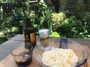 注)座敷ではないので、男らしく? パイプ椅子に小あぐらでした