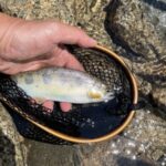 小さい淵狙いでポツポツ釣り上がります。